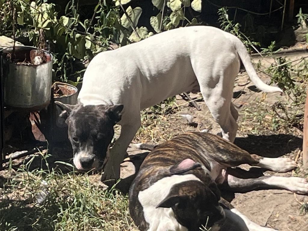 These beautiful 6-month-old brindle Pitbull/French Bulldog mixes are ready to find their forever homes. They’ve been raised with love, are fully up-to-date on shots, and have outgoing, happy personalities.