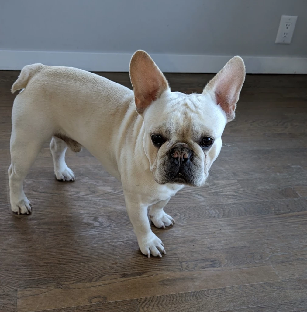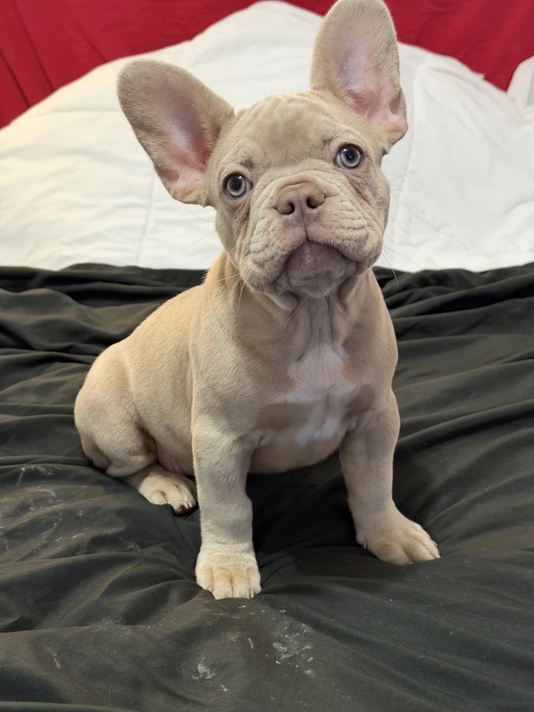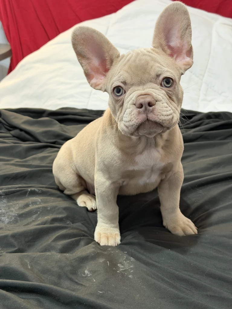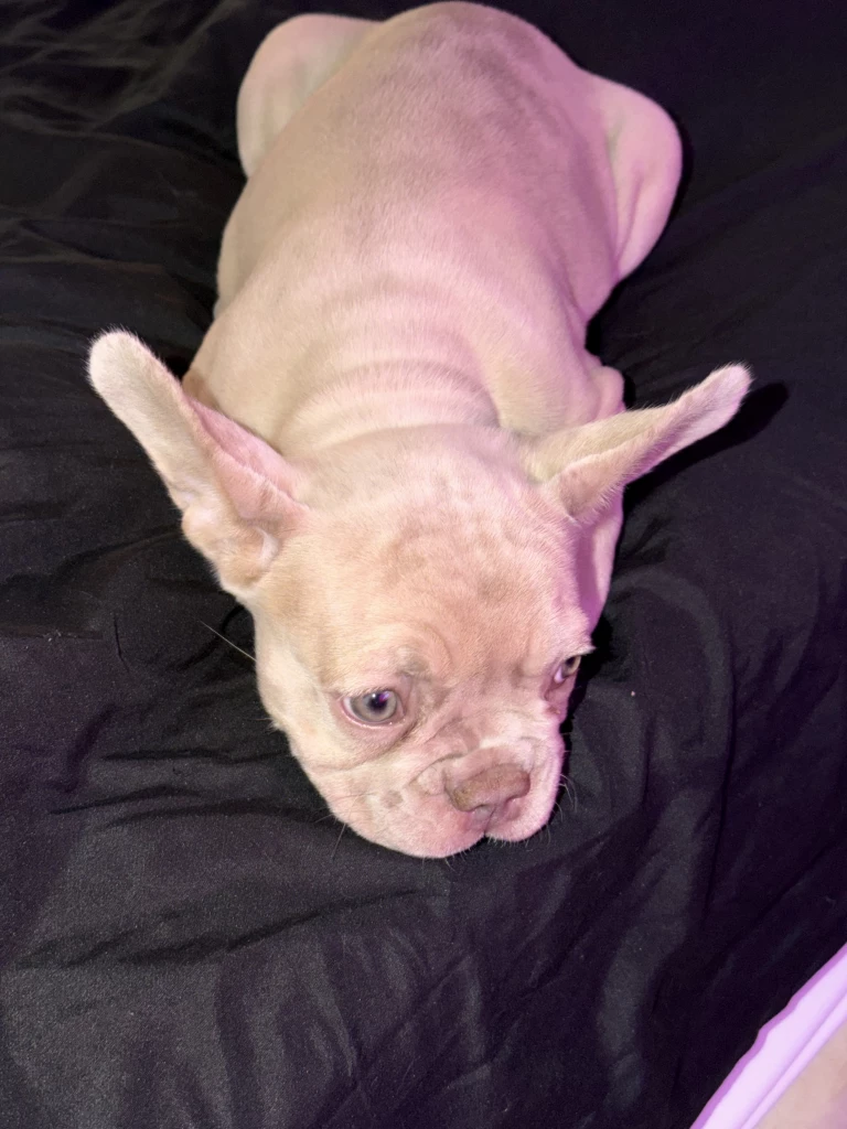 Beautiful cream French Bulldog female with a compact, sturdy build and classic Frenchie features. Excellent ear set, strong structure, and sweet expression. Calm, affectionate temperament and well-socialized. Healthy, well cared for, and full of personality. Would make a great companion or addition to a breeding program.
