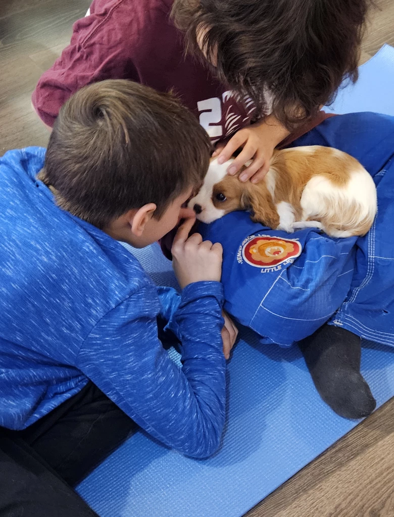 Sessions are run as drop-off experiences, so the room includes just the instructor, an assistant, the kids, and the puppies. This helps everyone stay relaxed and focused—and gives parents a little free time on the weekend, too.